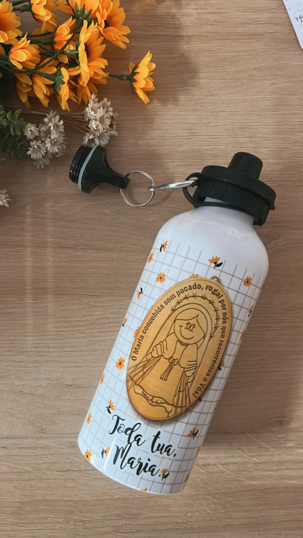 Transforme seu dia a dia em uma pequena oração e leve consigo a presença de Maria aonde for. Não perca a chance de ter essa linda garrafinha personalizada!